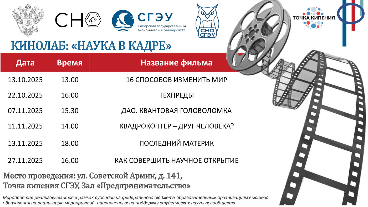 #СГЭУ #НаукаСГЭУ #СНО #СтуденческаяНаука #ГрантСНО #Кинолаб #НаукавКадре #ЦентрНаучногоВолонтерстваСГЭУ